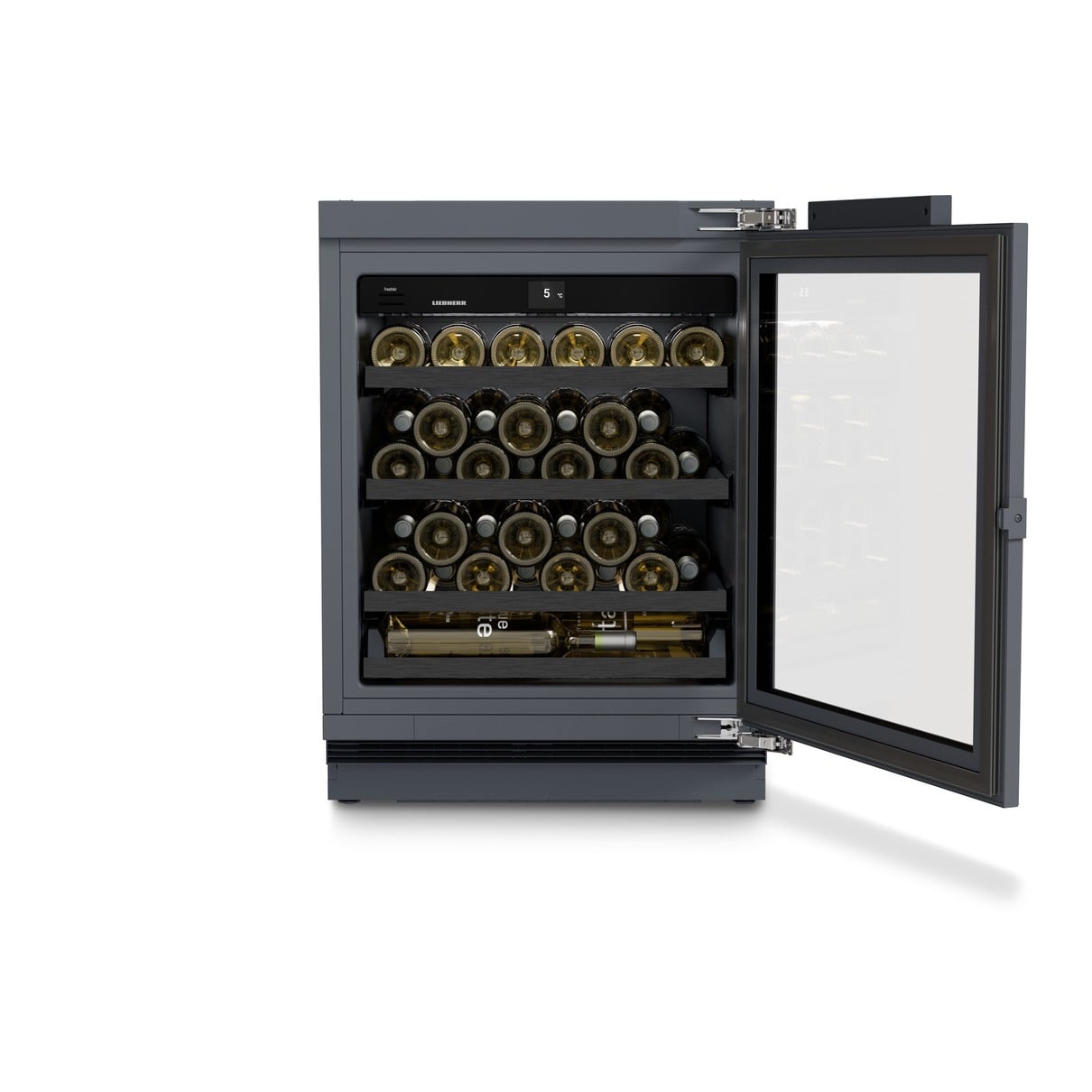 Deze onderbouw wijnkast kan uitgevoerd worden met een meubelpaneel in de kleur van de keuken en heeft één temperatuur in het gehele interieur voor een stabiele en langdurige opslag van de wijnvoorraad. Dit onderbouw model heeft een FreshAir filter, draagplateaus op rails met aluminium front en LED verlichting. Aanvullende informatie – Liebherr UWpri 3661-20